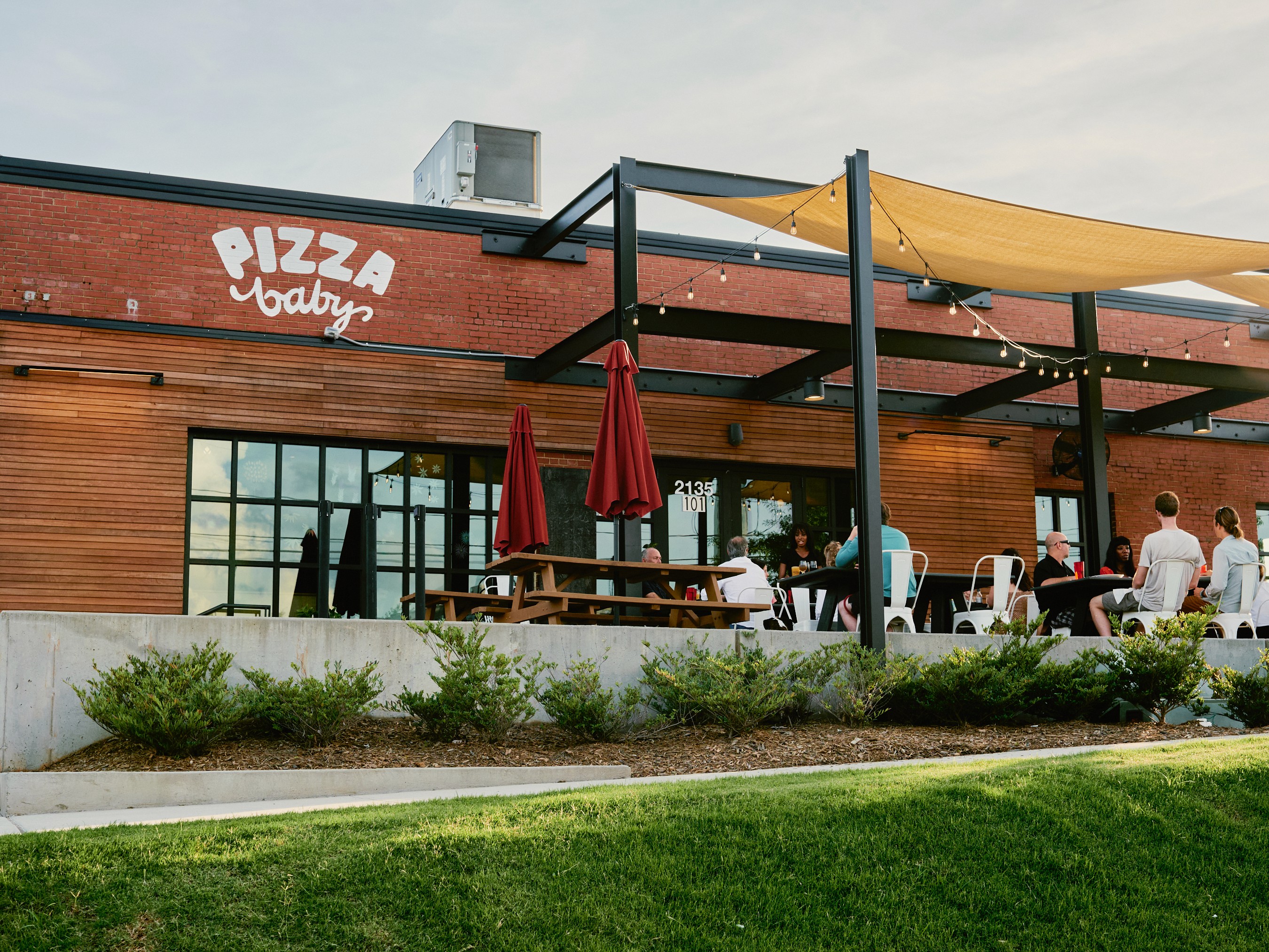 Pizza Baby West in Charlotte is a full-service pizzeria in Wesley Heights by Art & Commerce Food Group, known for its Americana and Roman-style pizzas with dough cold-proofed for 48 hours and an open kitchen so you can watch the pies being made.